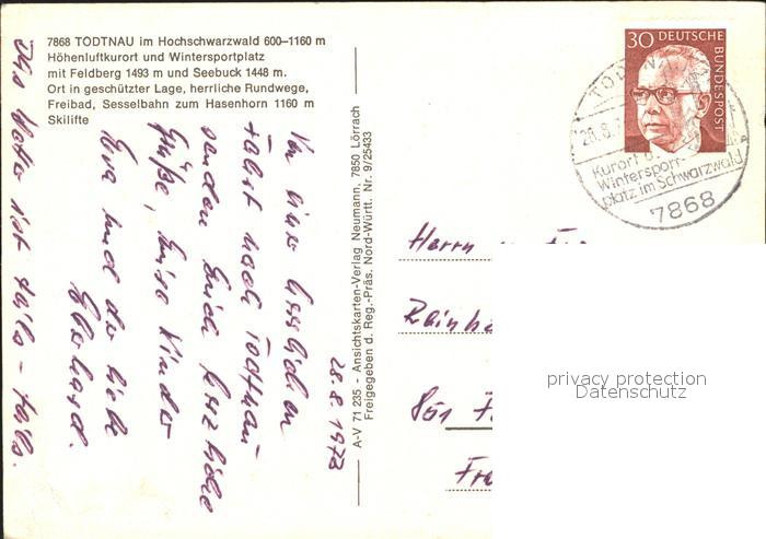71952615 alte Postkarte Todtnau Schwarzwald BW Feldberg Seebuck postalisch gelaufen KatCode: 11110008336087