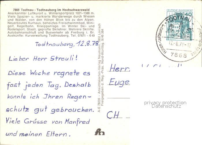 72276831 alte Postkarte Todtnau Schwarzwald BW Fliegeraufnahme postalisch gelaufen Erhaltung siehe scans KatCode: 11110008336087