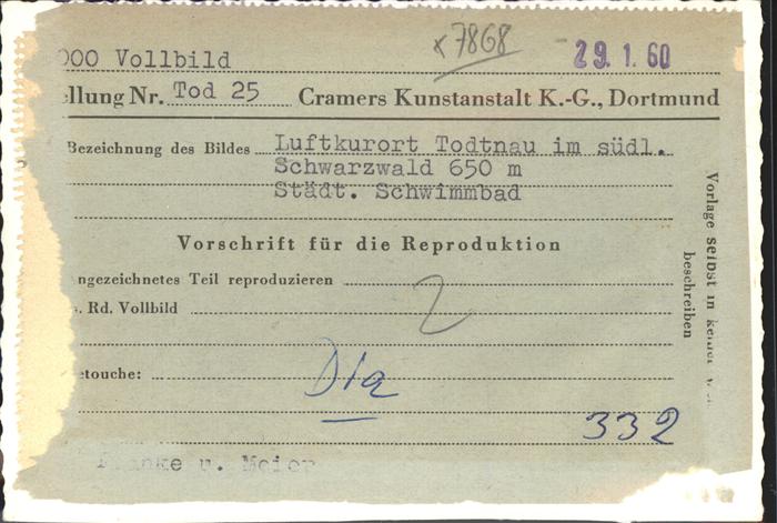 41395279 Todtnau Schwarzwald BW Fliegeraufnahme Staedtisches Schwimmbad postalisch nicht gelaufen gute Erhaltung Alte Ansichtskarte Postkarte hz_L Katcode 11110008336087