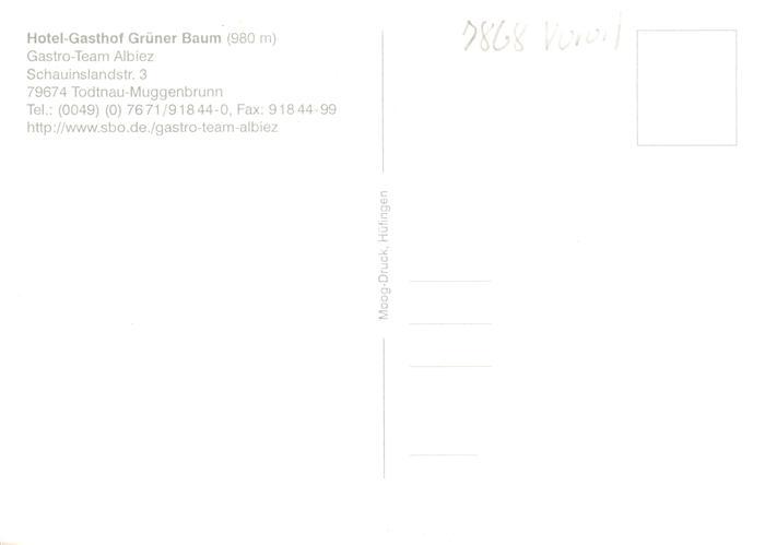 73935149 Todtnau Schwarzwald BW Hotel Gasthof Gruener Baum Gastraeume Zimmer postalisch nicht gelaufen Erhaltung siehe scans [WerneD78] Wern Katcode 11110008336087