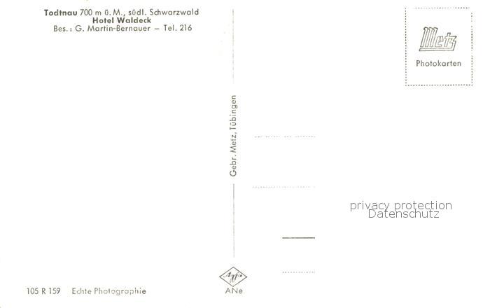 73778016 Todtnau Schwarzwald BW Hotel Waldeck postalisch nicht gelaufen Erhaltung siehe scans [WerneD78] Wern Katcode 11110008336087