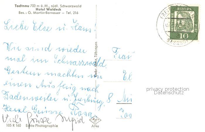 73778075 Todtnau Schwarzwald BW Hotel Waldeck Gaststube postalisch gelaufen Erhaltung siehe scans [WerneD78] alte Postkarte Wern Katcode 11110008336087