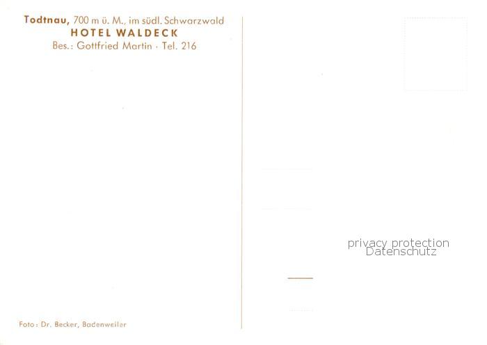 73852467 Todtnau Schwarzwald BW Hotel Waldeck im Schwarzwald postalisch nicht gelaufen Erhaltung siehe scans [FriedD77] Frie Katcode 11110008336087