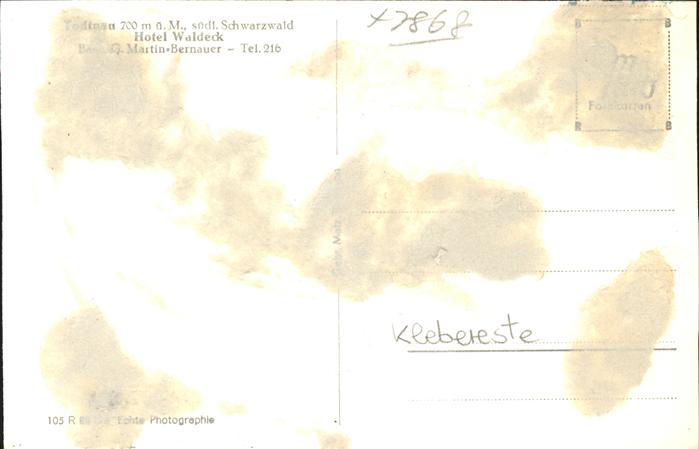 41395156 Todtnau Schwarzwald BW Hotel Waldeck Martin Bernauer postalisch nicht gelaufen Erhaltung mit Maengel Alte Ansichtskarte Postkarte hz_L Katcode 11110008336087