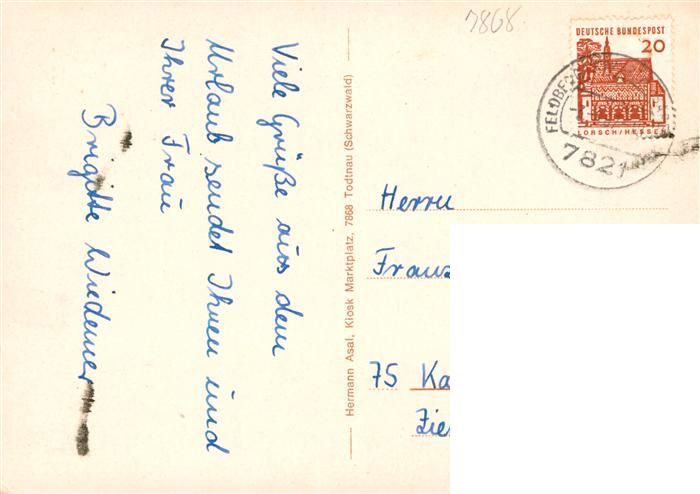 73927874 Todtnau Schwarzwald BW Koenig Christus Kirche Panorama Freibad Skilift Friedrichstrasse Alte Schwarzwaldmuehle Geburtshaus Nessler Gaststaette Hasenhorn postalisch gelaufen Erhaltung siehe scans [WerneD78] alte Postkarte Wern Katcode 11110008336087