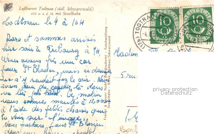 43498093 Todtnau Schwarzwald BW Sesselbahn postalisch gelaufen Erhaltung siehe scans [LiesaD40] alte Postkarte Lies Katcode 11110008336087