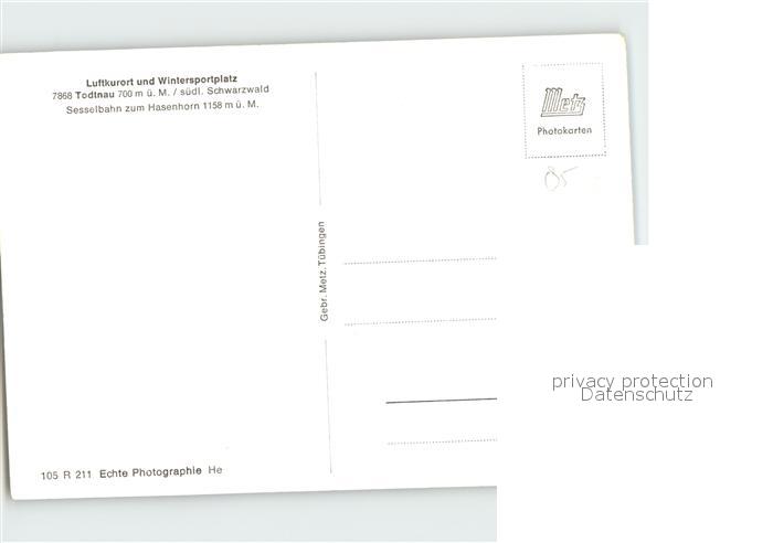 72331515 Todtnau Schwarzwald BW Sesselbahn zum Hasenhorn postalisch nicht gelaufen Erhaltung siehe scans KatCode: 11110008336087
