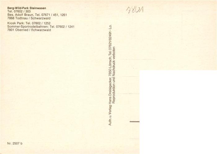 73931884 Todtnau Schwarzwald BW Sommer-Sportrodelbahn Bergwildpark Steinwasen im Schwarzwald postalisch nicht gelaufen Erhaltung siehe scans [FriedD77] Frie Katcode 11110008336087