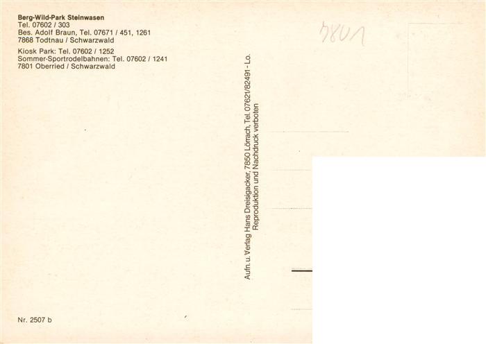 73932936 Todtnau Schwarzwald BW Sommerrodelbahn Berg Wild Park Steinwasen Gondelteich Panorama postalisch nicht gelaufen Erhaltung siehe scans [WerneD78] Wern Katcode 11110008336087