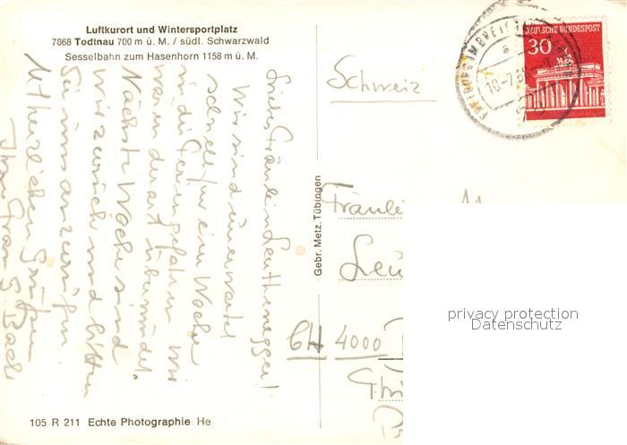 73295188 alte Postkarte Todtnau Sesselbahn zum Hasenhorn postalisch gelaufen Erhaltung siehe scans [WerneD78] KatCode: 11110008336087
