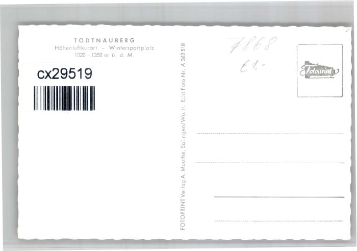 30924234 Todtnauberg postalisch nicht gelaufen KatCode: 11110008336087