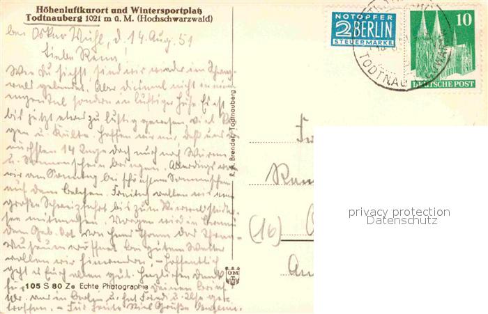 72818539 alte Postkarte Todtnauberg postalisch gelaufen Erhaltung siehe scans [NatalD47] KatCode: 11110008336087