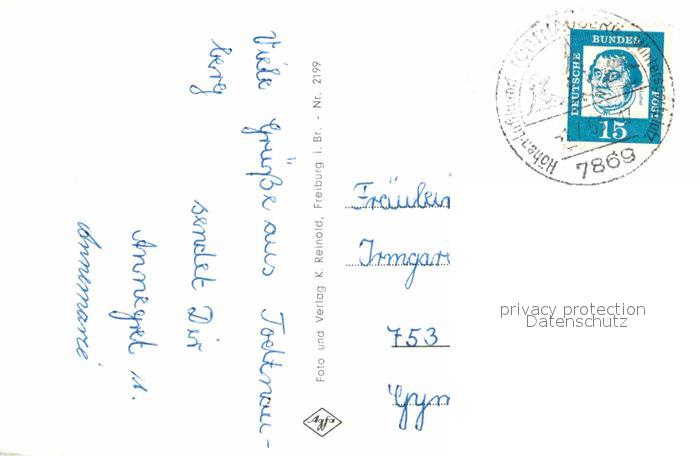 72843215 alte Postkarte Todtnauberg Alpensicht Kurort Strandbad Wasserfall Schwarzwaldhaus Kapelle Bergerhoehe Talblick postalisch gelaufen Erhaltung siehe scans [FriedD77] KatCode: 11110008336087