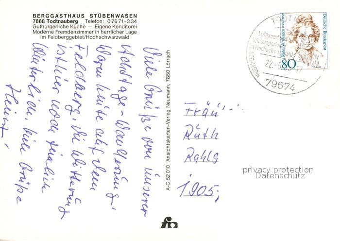 73569869 alte Postkarte Todtnauberg Berggasthaus Stuebenwasen postalisch gelaufen Erhaltung siehe scans [WerneD78] KatCode: 11110008336087