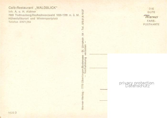 73641081 Todtnauberg Cafe Restaurant Waldblick Freiterrasse postalisch nicht gelaufen Erhaltung siehe scans [WerneD78] KatCode: 11110008336087