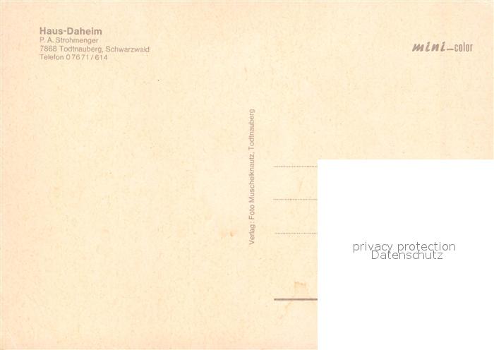 73070647 Todtnauberg Haus Daheim Pension Gaestehaus Schwarzwald postalisch nicht gelaufen Erhaltung siehe scans [FriedD77] KatCode: 11110008336087