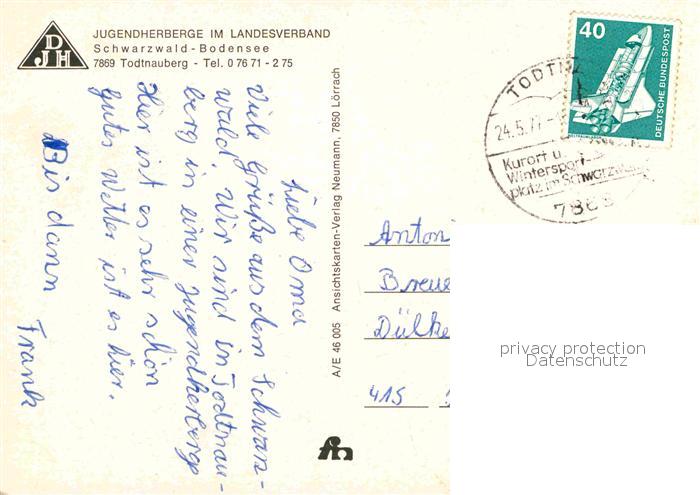 72663196 alte Postkarte Todtnauberg Jugendherberge Schwarzwald Bodensee postalisch gelaufen Erhaltung siehe scans [NatalD47] KatCode: 11110008336087