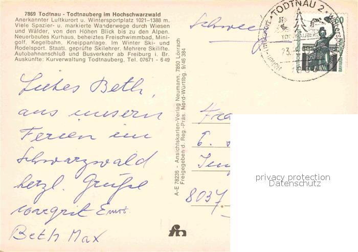 72829922 alte Postkarte Todtnauberg Luftkurort im Schwarzwald Fliegeraufnahme postalisch gelaufen Erhaltung siehe scans [FriedD77] KatCode: 11110008336087