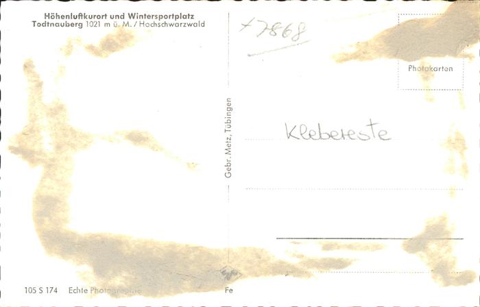41395108 Todtnauberg Schwarzwald BW postalisch nicht gelaufen Erhaltung mit Maengel Alte Ansichtskarte Postkarte hz_L Katcode 11110008336087