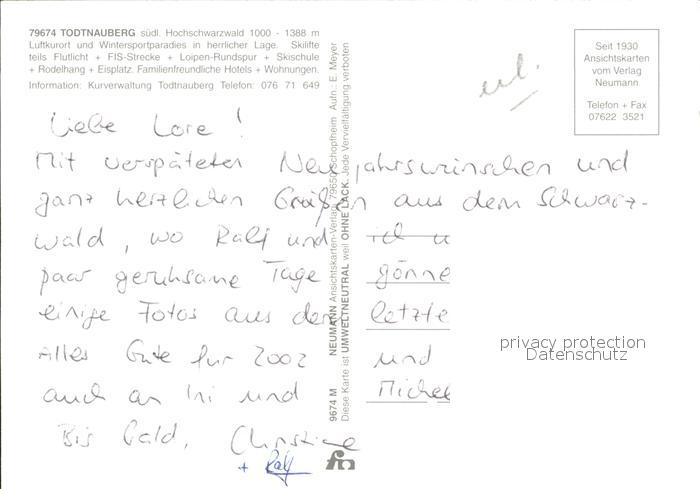 72182575 Todtnauberg Schwarzwald BW postalisch nicht gelaufen Erhaltung siehe scans KatCode: 11110008336087
