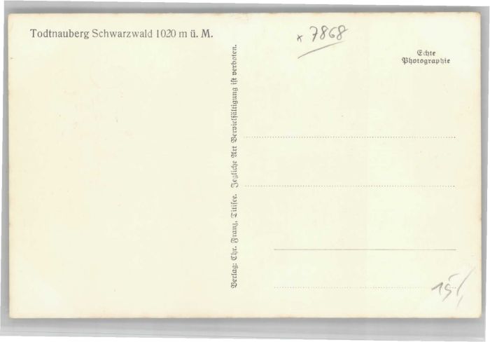 40734477 Todtnauberg Schwarzwald BW postalisch nicht gelaufen Alte Ansichtskarte Postkarte Katcode 11110008336087