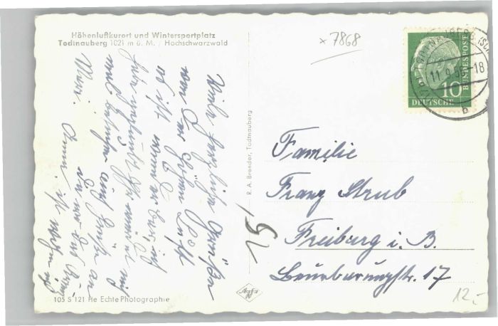 40734453 Todtnauberg Schwarzwald BW postalisch gelaufen Alte Ansichtskarte Postkarte alte Postkarte Katcode 11110008336087