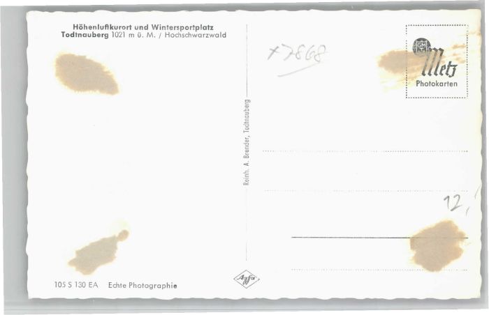 40734448 Todtnauberg Schwarzwald BW postalisch nicht gelaufen Alte Ansichtskarte Postkarte Katcode 11110008336087