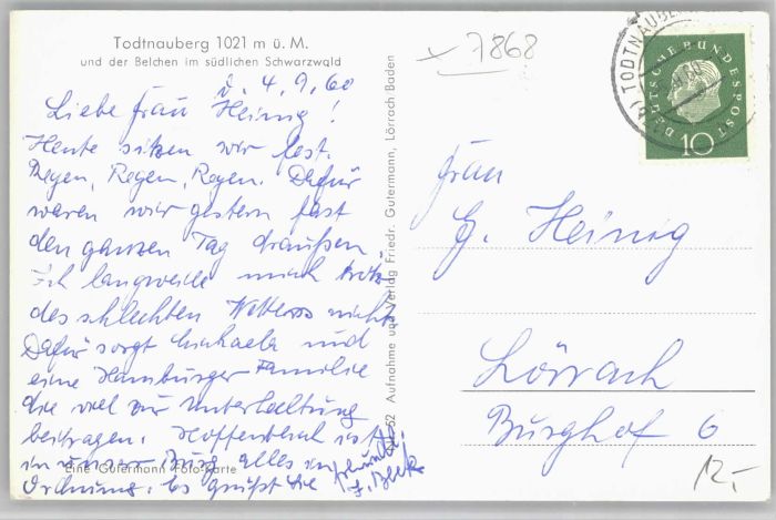 40734447 Todtnauberg Schwarzwald BW postalisch gelaufen Alte Ansichtskarte Postkarte alte Postkarte Katcode 11110008336087
