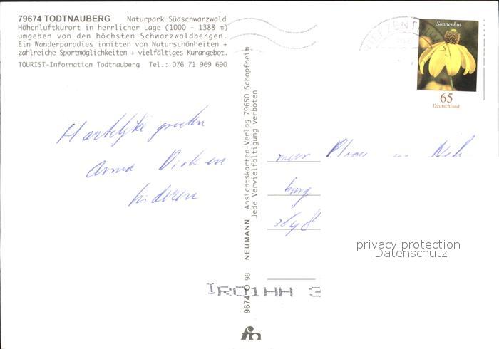 71909705 alte Postkarte Todtnauberg Schwarzwald BW postalisch gelaufen KatCode: 11110008336087