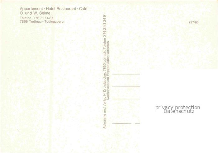 Todtnauberg Schwarzwald BW Appartement Hotel Restaurant Café Seime postalisch nicht gelaufen Erhaltung siehe scans [FriedD77] Frie Katcode 11110008336087