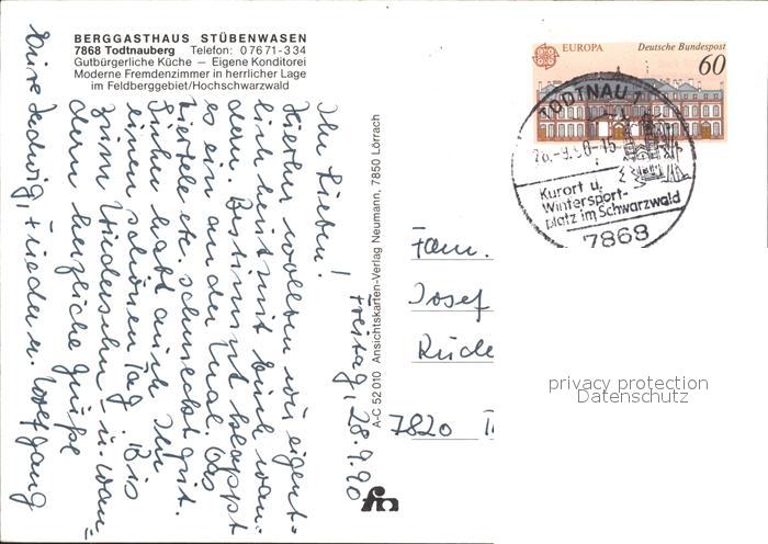 72349263 alte Postkarte Todtnauberg Schwarzwald BW Berggasthaus Stuebenwasen postalisch gelaufen Erhaltung siehe scans KatCode: 11110008336087