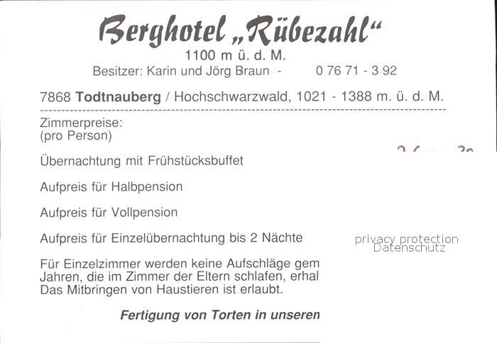 72551532 Todtnauberg Schwarzwald BW Berghotel Ruebezahl postalisch nicht gelaufen Werbekarte (keine Postkarte) Erhaltung siehe scans [LiesaD40] KatCode: 11110008336087