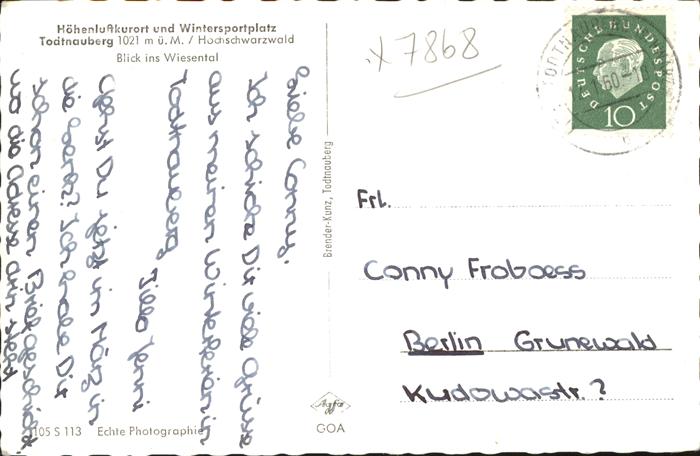 41395126 Todtnauberg Schwarzwald BW Blick ins Wiesental im Schnee Alpenpanorama postalisch gelaufen gute Erhaltung Alte Ansichtskarte Postkarte alte Postkarte hz_L Katcode 11110008336087
