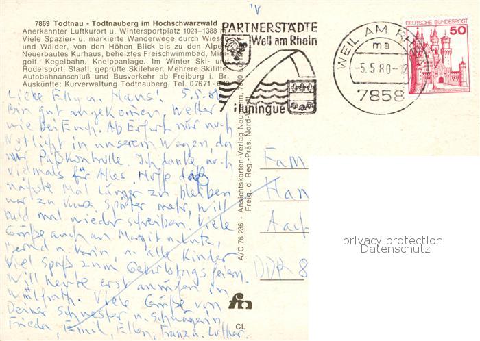 73836204 Todtnauberg Schwarzwald BW Fliegeraufnahme postalisch nicht gelaufen Erhaltung siehe scans [WerneD78] Wern Katcode 11110008336087