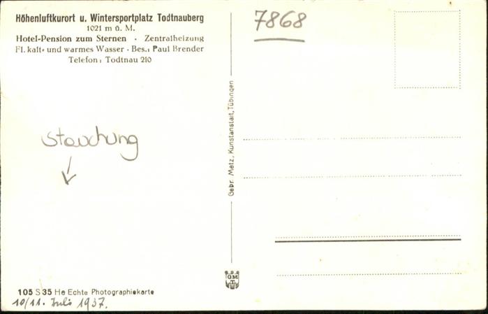 40955114 Todtnauberg Schwarzwald BW Hotel Pension zum Sternen NZ4 postalisch nicht gelaufen Alte Ansichtskarte Postkarte Katcode 11110008336087