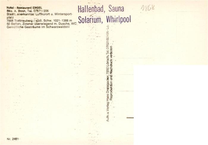 73927825 Todtnauberg Schwarzwald BW Hotel Restaurant Engel postalisch nicht gelaufen Erhaltung siehe scans [WerneD78] Wern Katcode 11110008336087
