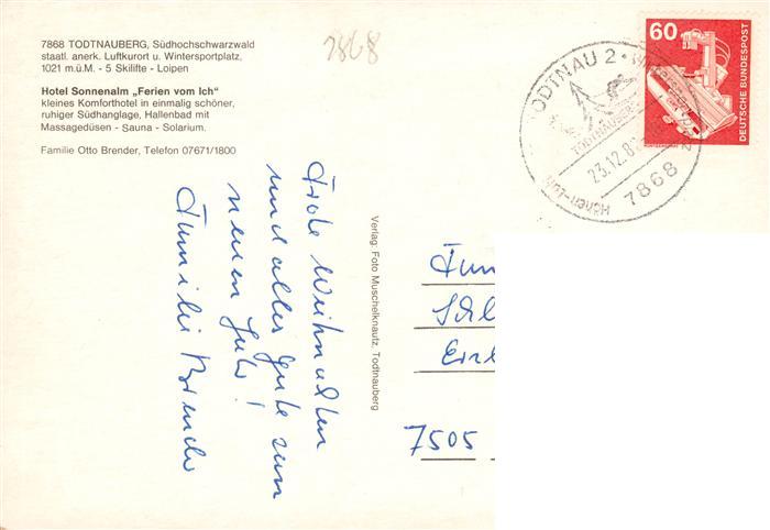 73927407 Todtnauberg Schwarzwald BW Hotel Sonnenalm postalisch gelaufen Erhaltung siehe scans [WerneD78] alte Postkarte Wern Katcode 11110008336087