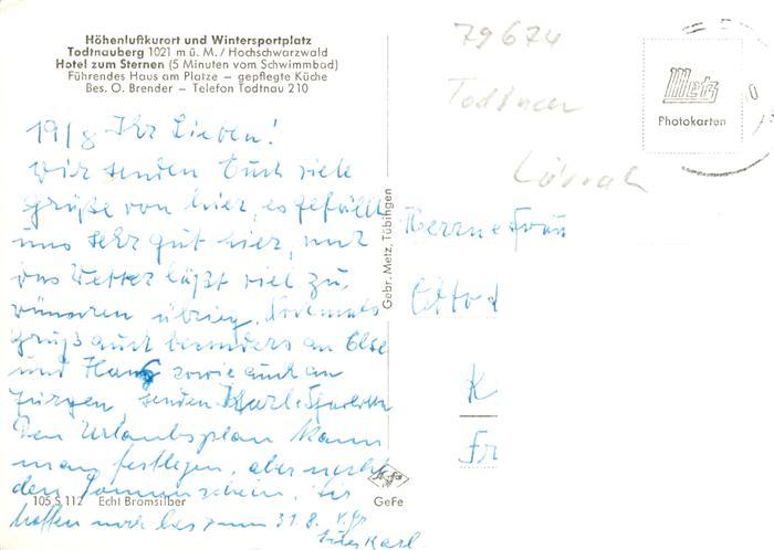 73894850 Todtnauberg Schwarzwald BW Hotel Sternen Gastraum Terrasse Panorama postalisch gelaufen Erhaltung siehe scans [FriedD77] alte Postkarte Frie Katcode 11110008336087