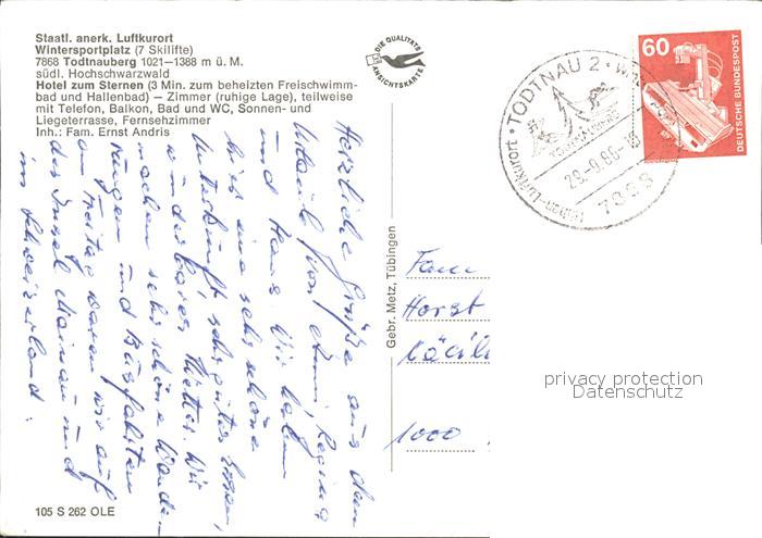 72261971 alte Postkarte Todtnauberg Schwarzwald BW Hotel zum Sternen Luftkurort Schwarzwald postalisch gelaufen Erhaltung siehe scans KatCode: 11110008336087