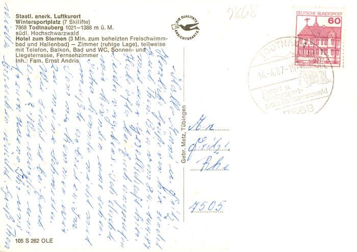 73927598 Todtnauberg Schwarzwald BW Hotel Zum Sternen Terrasse Panorama postalisch gelaufen Erhaltung siehe scans [WerneD78] alte Postkarte Wern Katcode 11110008336087