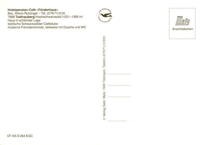73927768 Todtnauberg Schwarzwald BW Hotelpension Cafe Foersterhaus Gaststube Panorama postalisch nicht gelaufen Erhaltung siehe scans [WerneD78] Wern Katcode 11110008336087