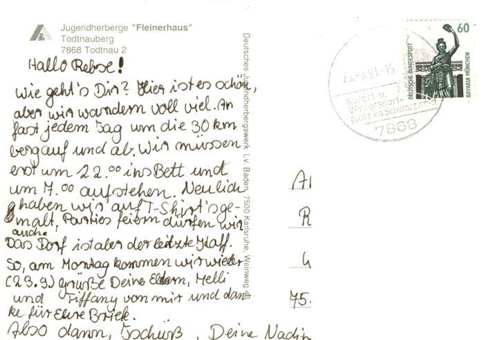 73927799 Todtnauberg Schwarzwald BW Jugendherberge Fleinerhaus postalisch gelaufen Erhaltung siehe scans [WerneD78] alte Postkarte Wern Katcode 11110008336087