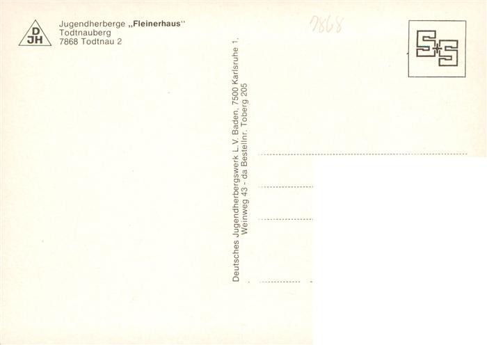 73927619 Todtnauberg Schwarzwald BW Jugendherberge Fleinerhaus postalisch nicht gelaufen Erhaltung siehe scans [WerneD78] Wern Katcode 11110008336087