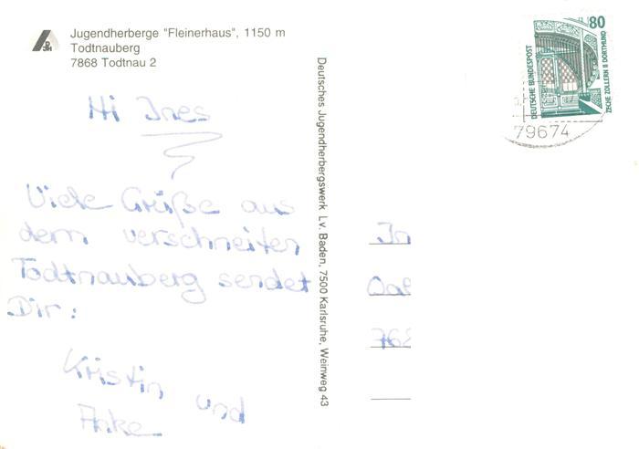 73935140 Todtnauberg Schwarzwald BW Jugendherberge Fleinerhaus Panorama postalisch gelaufen Erhaltung siehe scans [WerneD78] alte Postkarte Wern Katcode 11110008336087