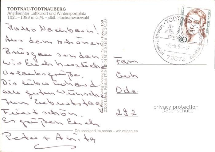 72367046 alte Postkarte Todtnauberg Schwarzwald BW Luftkurort Wintersportplatz Schwarzwald Kirche Schwimmbad postalisch gelaufen Erhaltung siehe scans KatCode: 11110008336087