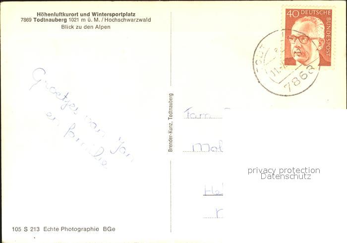 72471370 alte Postkarte Todtnauberg Schwarzwald BW mit Alpen postalisch gelaufen Erhaltung siehe scans KatCode: 11110008336087