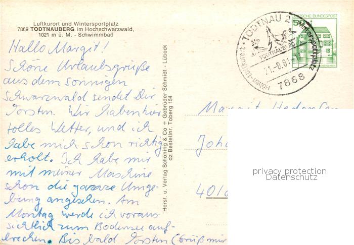 73813798 Todtnauberg Schwarzwald BW Panorama mit Schwimmbad postalisch gelaufen Erhaltung siehe scans [WerneD78] alte Postkarte Wern Katcode 11110008336087