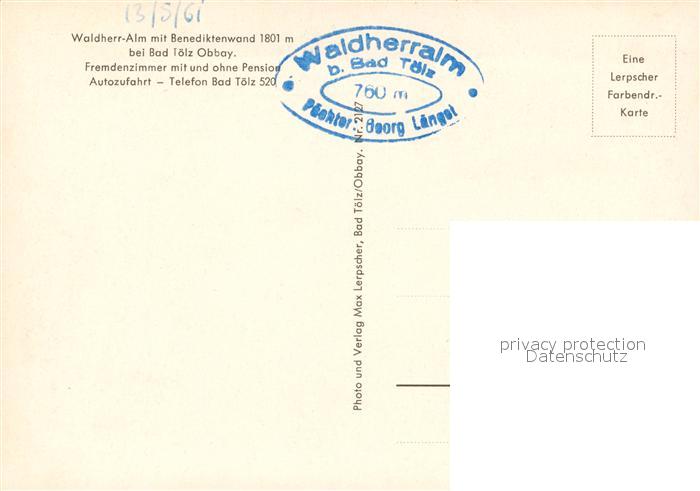 73048987 Toelz Bad Waldherr Alm Benediktenwand postalisch nicht gelaufen Erhaltung siehe scans [KathaD81] KatCode: 11110009173112