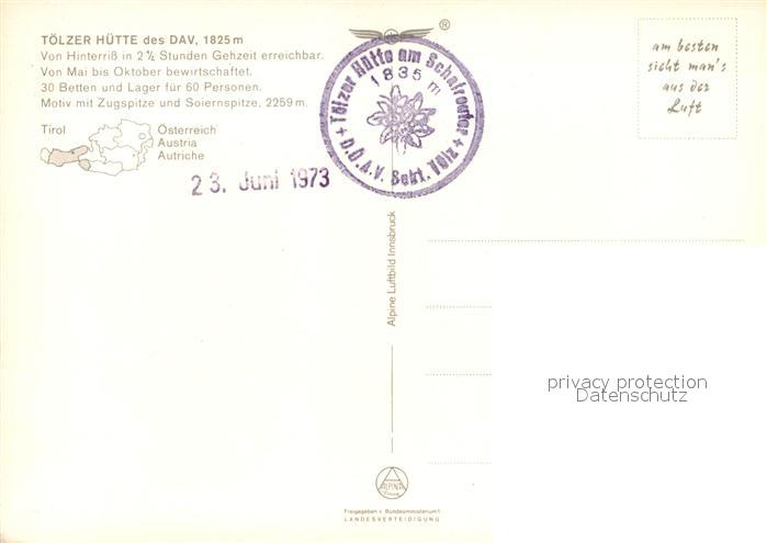 73054726 Toelzerhuette Fliegeraufnahme mit Zugspitze und Soiernspitze postalisch nicht gelaufen Erhaltung siehe scans [WerneD78] KatCode: 11390335070936