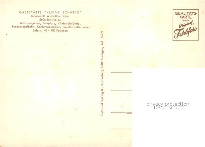 73813148 Toenisheide Gaststaette Kleine Schweiz postalisch nicht gelaufen Erhaltung siehe scans [WerneD78] KatCode: 11110005158032